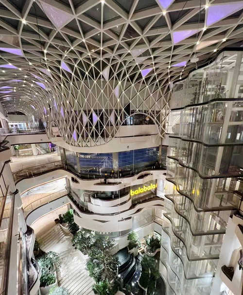 形如花瓣的商業(yè)中心裙房樂薈中心,有西北最大的室內(nèi)綠色生態(tài)疊水景觀和高達(dá)36m的巨型水晶瀑布,是集四季、山水、綠植、花香、蟲鳴、鳥叫為一體的“森林氧吧”。在夜景泛光照明的烘托下,南飛鴻充分展現(xiàn)創(chuàng)新型商業(yè)綜合體的獨(dú)特氣質(zhì),拔高城市居民審美的同時(shí),也刷新著西安商業(yè)的新高度。