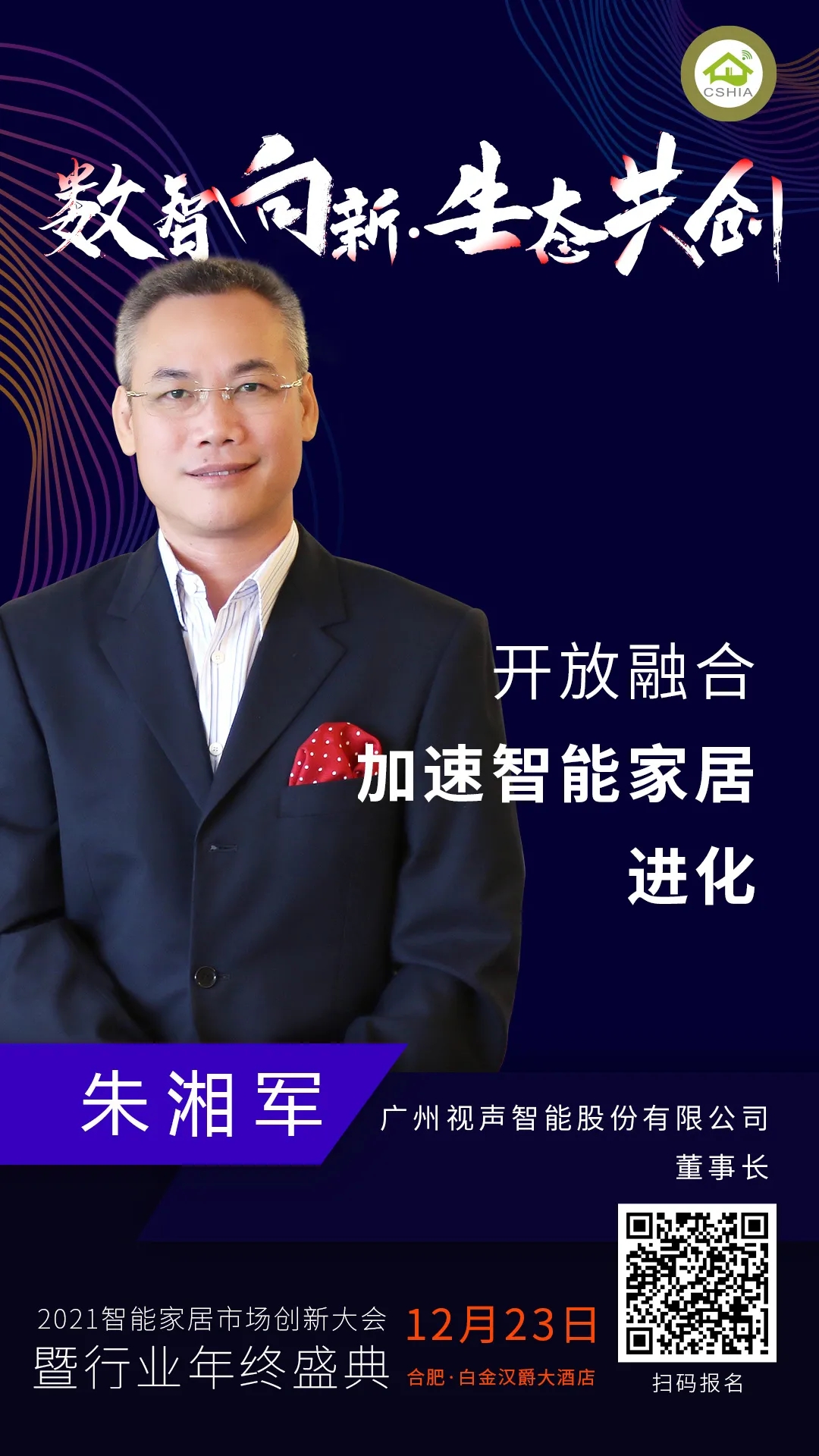 2021智能家居市場(chǎng)創(chuàng)新大會(huì)暨行業(yè)年終盛典,廣州視聲智能股份有限公司董事長(zhǎng)朱湘軍先生將出席大會(huì),并帶來(lái)《開(kāi)放融合,加速智能家居行業(yè)進(jìn)化》主題演講。