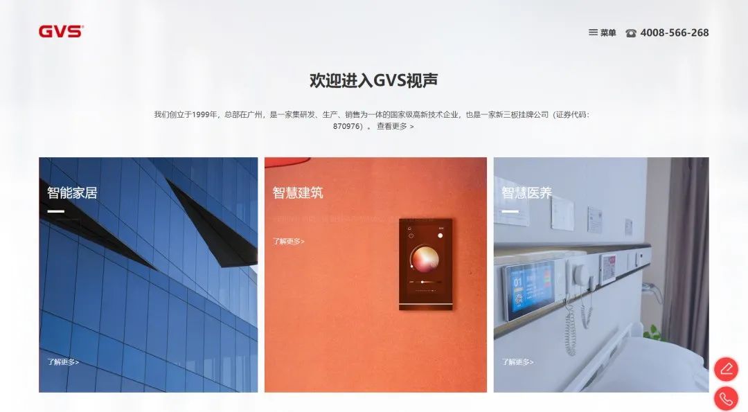 歡迎來到GVS視聲,很多關注視聲的朋友都知道,我們的服務布局3個領域:智能家居、智慧建筑和智慧醫(yī)養(yǎng)。為了方便大家可以更快地查找相關業(yè)務內容,我們在首頁就設置了3個入口,非常直觀,非常簡單,非常好找。